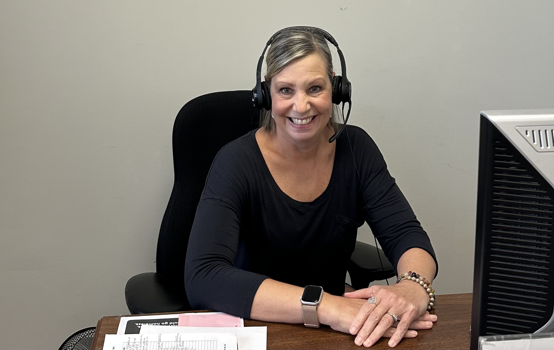 Sandy Beth Lyens volunteers each Tuesday in our office, answering intake calls with dignity and thoughtfulness.